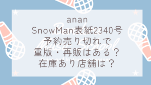 そこでこの記事では、ananキンプリ表紙2339号売り切れで再販重版はある?在庫あり店舗はどこ?についてまとめています♪